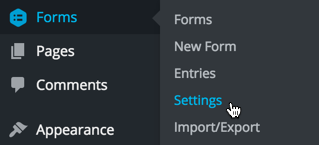 Once logged in, hover over Forms, then click on Settings on the left side navigation menu.