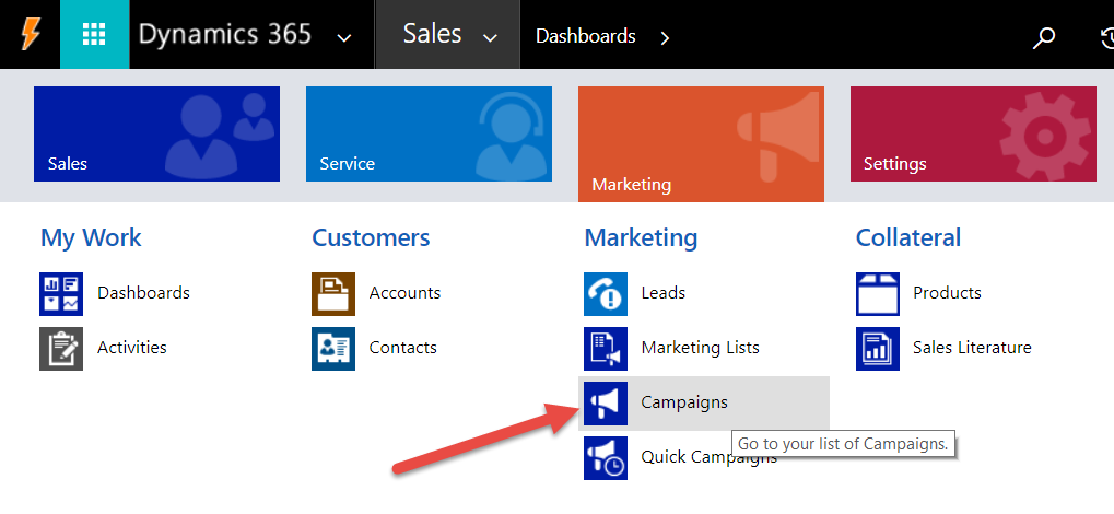 Once logged-in, navigate to the Marketing > Campaigns list.
